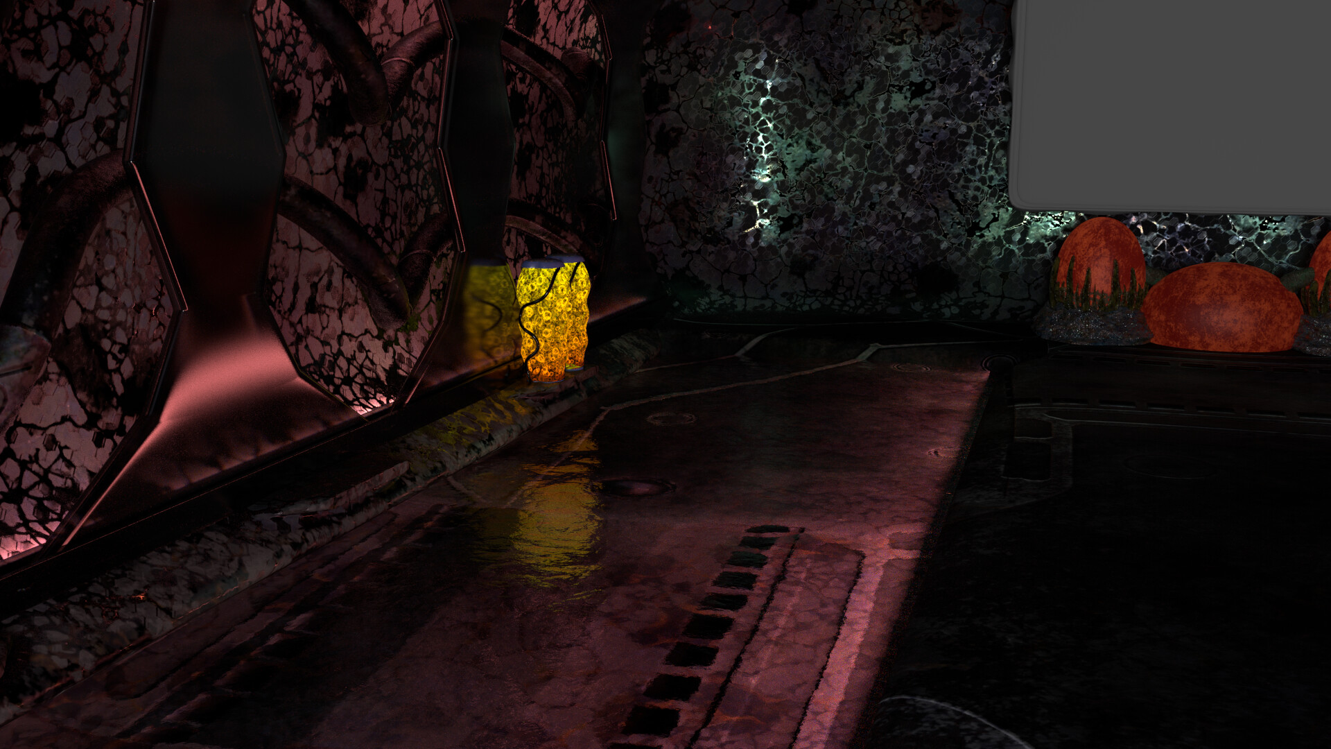 This environment allowed us to do some extra material experiments, such as adding a glow to the alien's eyes.